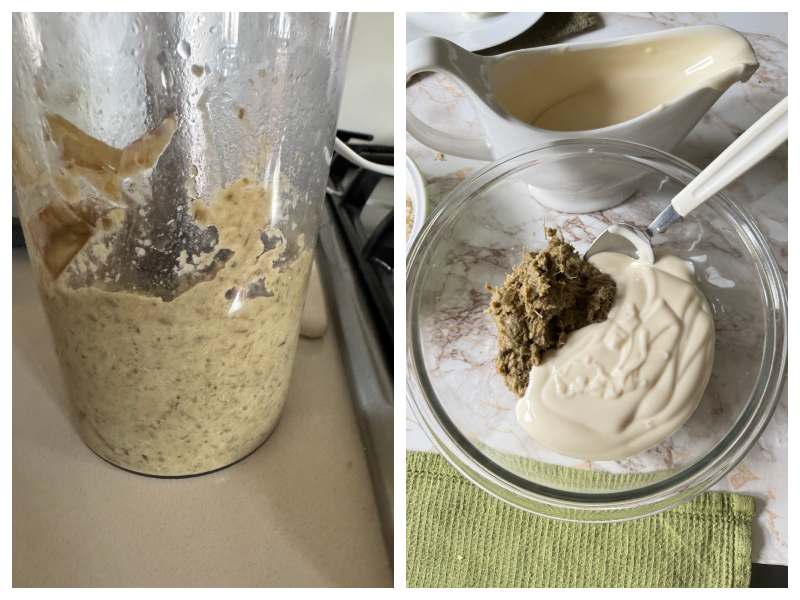 - Once the artichokes are cooked, take about ⅔ of them and blend them in a food processor until smooth and creamy.
