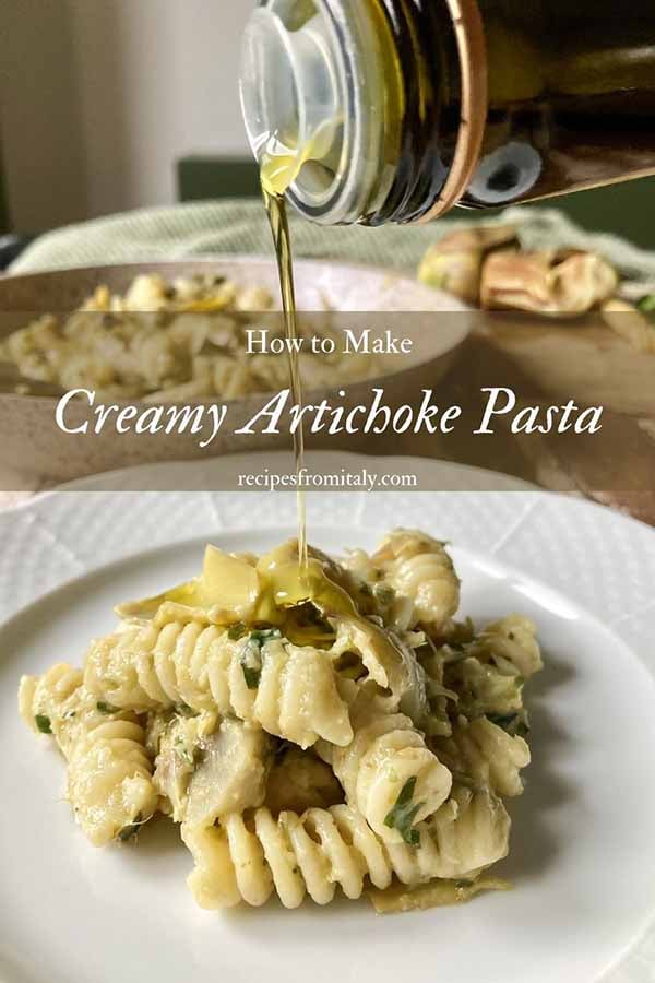Using the pasta cooking water is essential for creaminess. The starch in it helps the artichoke pasta sauce become creamy.