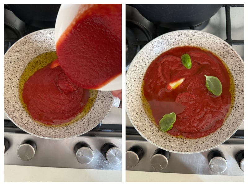 - 500 ml (~2 cups) of tomato passata. I recommend Italian Passata by La Bella San Marzano. Or make homemade tomato passata with my recipe. You can also opt for coarsely crushed peeled tomatoes.