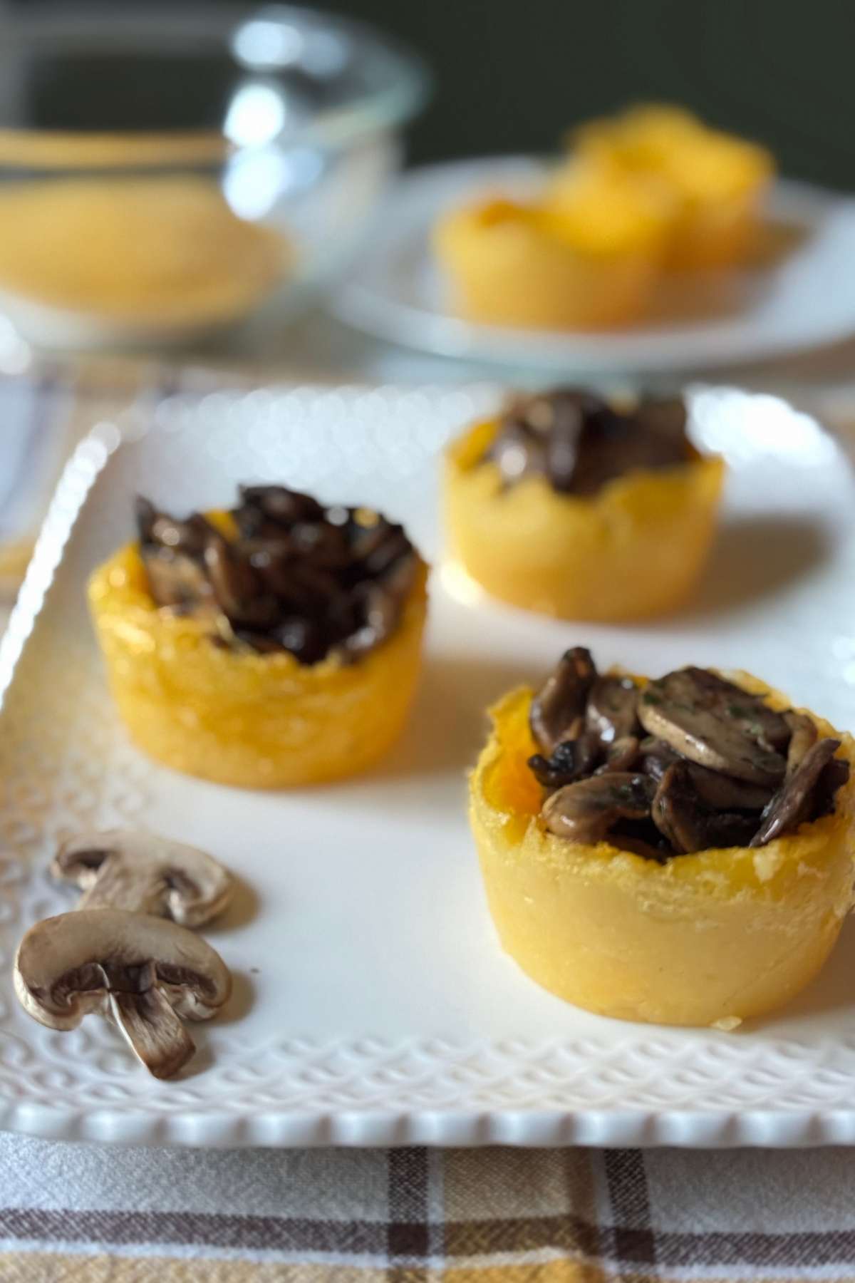 Here is the recipe for polenta cups with sautéed mushrooms, Italian-style.
