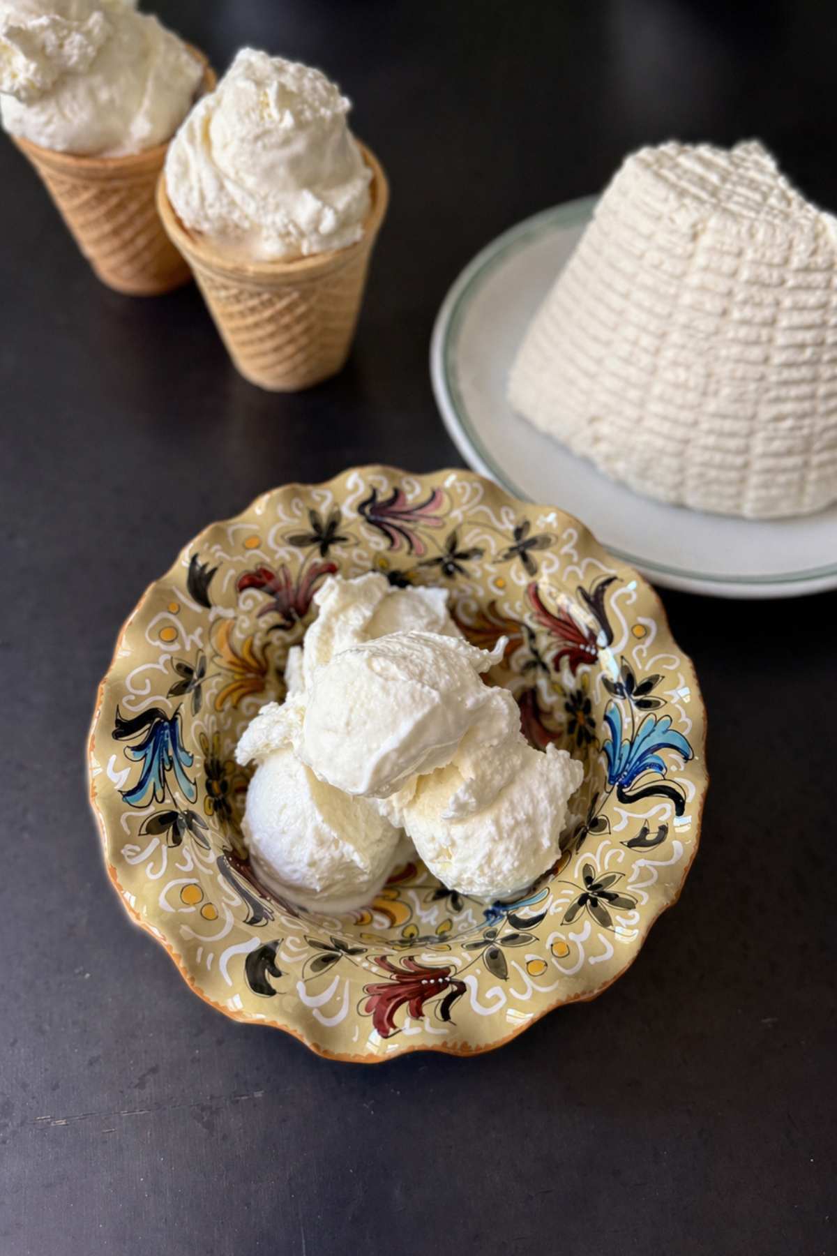 Toppings and Garnishes: When serving ricotta gelato, you can garnish it in many different ways. Like Fior di Latte gelato, it has a mild and creamy flavor that pairs well with a variety of toppings.