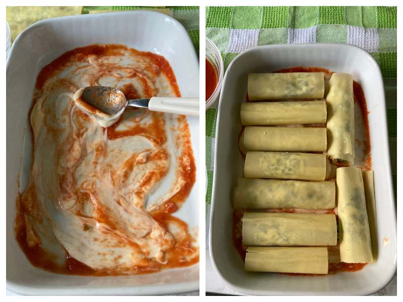 As already mentioned, it's also possible to make the cannelloni with spinach and ricotta completely "in bianco", without adding tomato sauce.